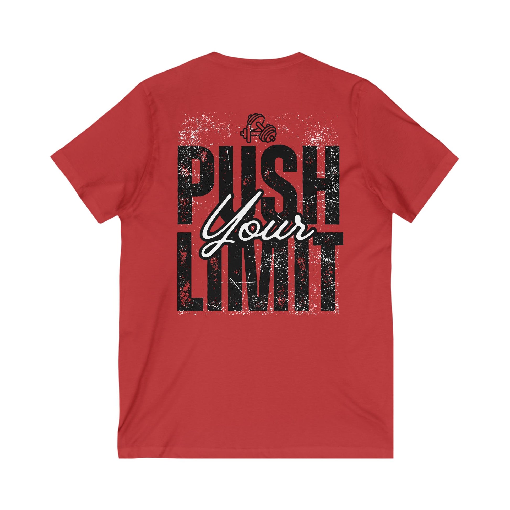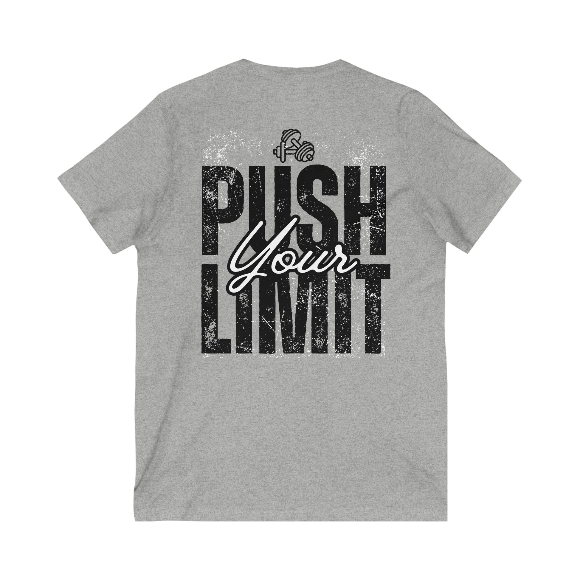 Elevate your casual wardrobe with this Unisex Jersey Short Sleeve V-Neck Tee—a perfect blend of comfort and style. The lightweight 100% cotton fabric ensures a soft touch, making it ideal for all-day wear. Featuring a trendy V-neckline and side seams for a flattering retail fit, this tee exudes a sporty vibe, perfect for workouts or relaxed outings with friends. It appeals to fitness enthusiasts, casual wear lovers, and anyone looking for a stylish addition to their collection. This tee is a great choice for gifting on birthdays, fitness milestones, or any casual celebration during the year. Feel confident and comfortable as you 'Push Your Limit' in this versatile tee.